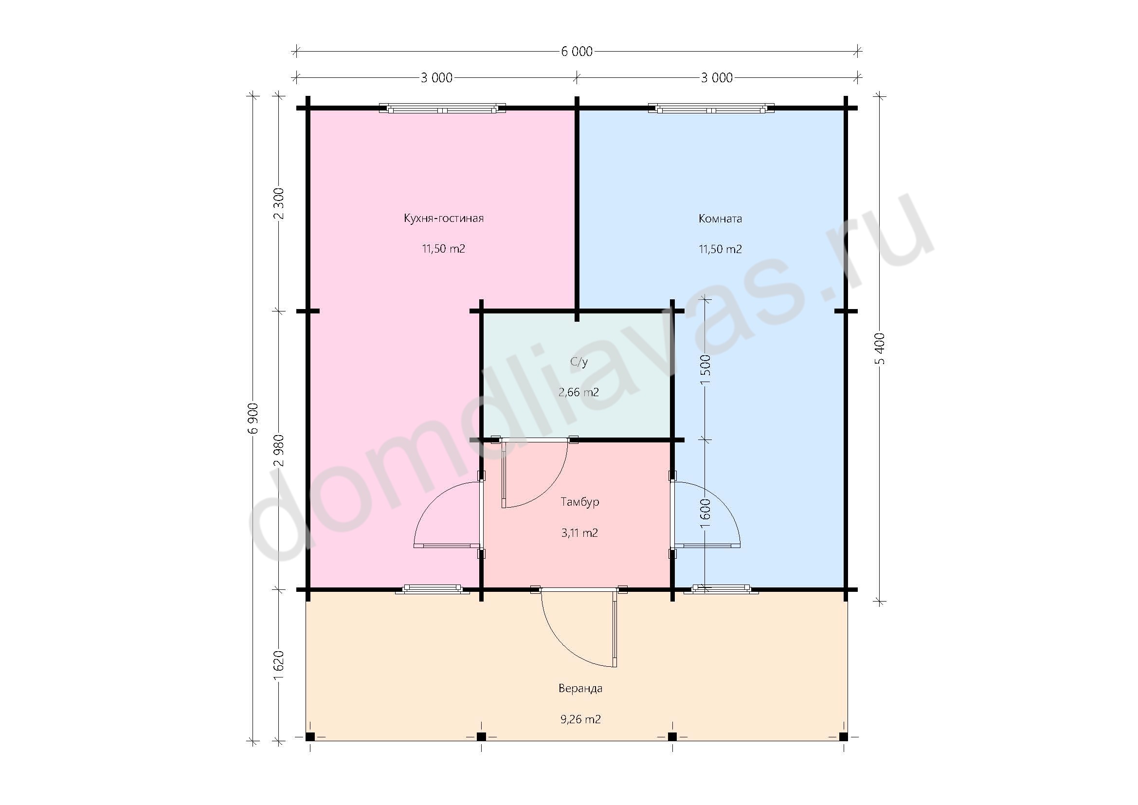 - Внешние размеры 6,0х6,9 м